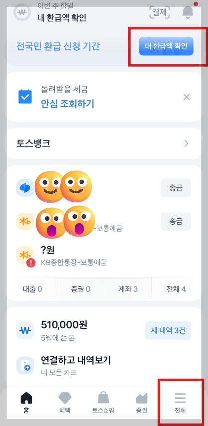 - 스마트폰에서 토스 앱을 실행합니다.